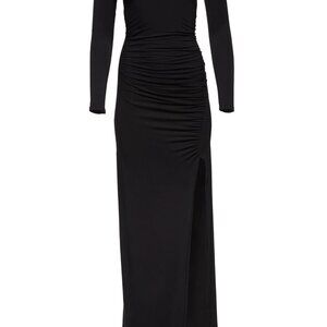 The Off the Shoulder Evening dress is a soft jersey dress with a supportive feminine fit and a glamorous off-shoulder neckline. Made from Smooth Slinky Jersey knit and double lined for extra support and form fit.
