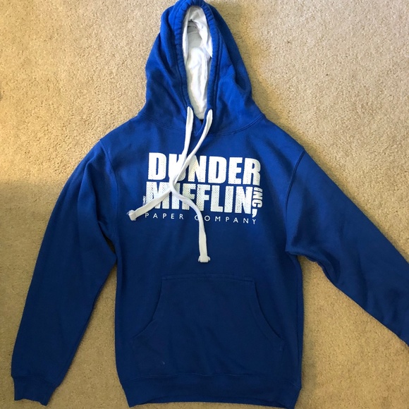 White "Dunder Mifflin Inc, Paper Company" lettering