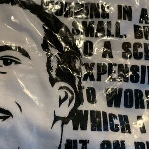 New in Bag/no tag. The Office Stanley T-Shirt "I Love Pretzel Day" is a unisex white shirt in size medium, featuring a graphic print of the character Stanley from The Office. This short sleeve t-shirt has a crew neckline and is made of cotton material. It is machine washable and has a regular fit, perfect for wearing in any season. The shirt is branded by Cotton Heritage and is a fun and unique addition to any fan's wardrobe, with a theme that celebrates both The Office show and a love for pretzels.