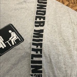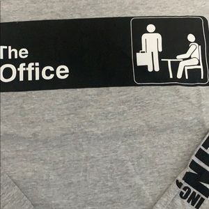 “The Office”. Long sleeve heather gray t-shirt for men. Cotton/ polyester, machine washable. The material is soft. NWT. This will be good this fall. It’s from my smoke free home.