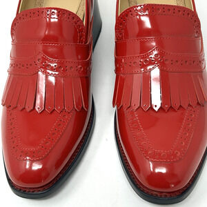 The Office of Angela Scott Miss Juliette Kiltie Loafer Heels Size 39 Red Patent