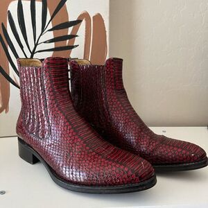 The Office of Angela Scott Mr Jagger Boots Leather Snakeskin Embossed Red Sz 37