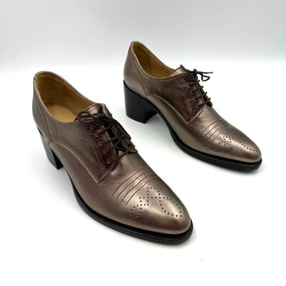 The Office of Angela Scott Women’s Miss Button Bronze Metallic Heeled Oxfords