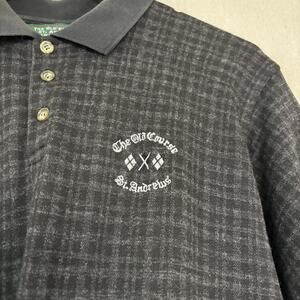 The Old Course St Andrews Plaid Polo Shirt Men Medium Dark Gray Athleisure Golf