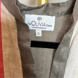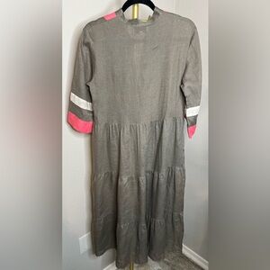 From La Boutique Canne Bianche a Luxury Italian Boutique The Olivia Dress 100% Italian linen in a beautiful moss color with a tiered skirt and 3/4 sleeve design highlighted by the colorblocking on the bust.