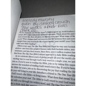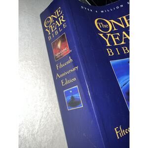 This is a special edition of the One Year Bible, celebrating its 15th anniversary. It includes the New Living Translation (NLT) text and a devotional guide for every day of the year. The book measures 8 inches in length and 5.2 inches in width, with 1472 pages and a weight of 30.2 ounces.