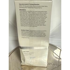 Besides glycolic acid, it contains Tasmanian Pepperberry derivative to help reduce irritation, and ginseng root and aloe vera for soothing and brightening benefits.