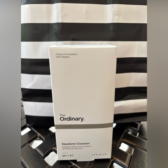 Hydrating squalane cleanser from The Ordinary. Removes makeup and impurities. Leaves skin soft and balanced. Suitable for daily use and most skin types.