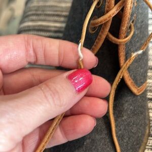 Hidden wedge heel Gray wool Leather trim accents & shoelaces
