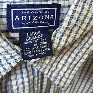 The Original Arizona Jean Co Plaid Mens Button Up Shirt Size L Blue White Plaid