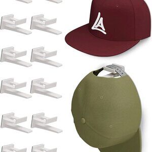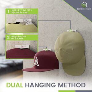 LokiEssentials Adhesive Hat Rack Display Hooks for Wall & Door (12 Pack) Baseball Cap Holder, Closet & Storage Organizer, Strong Cap Hanger for Room & Mancave, No Drilling, USA Patent Pending (White)