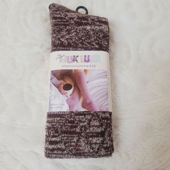 The Original Muk Luks Knee High Socks Brown Multi Color Confetti Cotton OSFM New