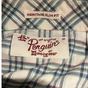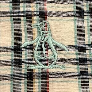 The Original Penguin Short Sleeve Slim Fit Shirt Cream Plaid Medium
