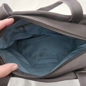 The Original Seatbelt Bag Charcoal Gray Double Strap Shoulder Bag Purse 2000s. some condition from use as pictured. measurements are approximately: 11.5 x 9 x 3.5 inches.