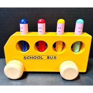 The Original Toy Company School Bus wooden rolling vehicle