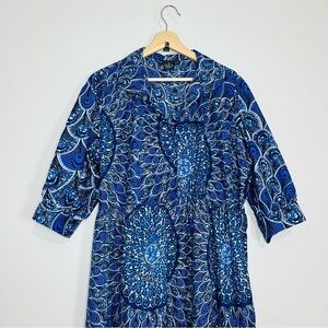 The Oula Company Blue Tiered Ruffled Sundress with Cowl Neck printed size xlarge