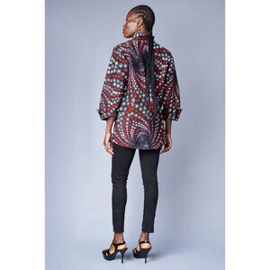 🆕 The Oula Company Geometric Print Boyfriend Top Blouse Medium Blue Red
