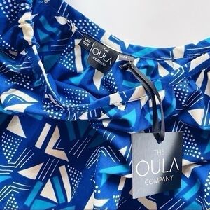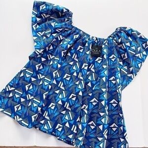 The Oula Company One Size Geo Print Cotton Popover Top Blue