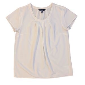 The Outfitters Lands End Women’s Cream Scoop Short Sleeve Pleated Blouse Size 6