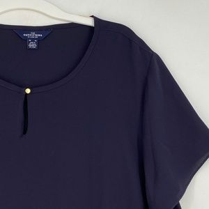 The Outfitters by Lands' End Womens 30W Pullover Blouse Navy Blue Short Sleeves