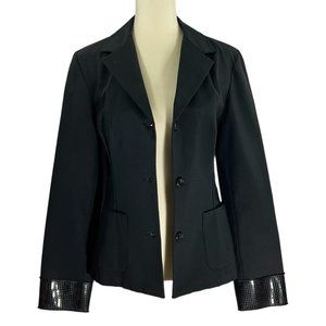 The sleeves make this blazer special -- 2.75" shiny black on black "cuff" (see pics)