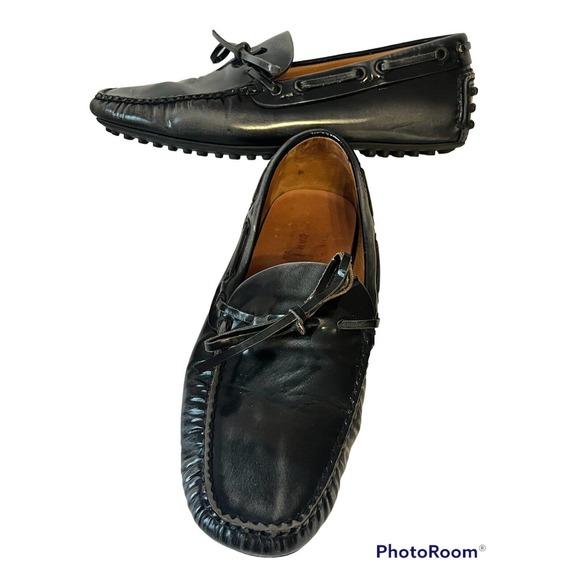 Great preowned condition. Men’s size 7. Lightly worn. These are a burnished distressed pewter grey color patent leather. Tie closure. Be aware one of the ties is a bit split. See pic. Otherwise great condition.