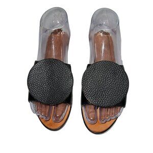 The Palatines Caeleste Slide Sandal in Black and Tan Size 6 Leather Circle Flat