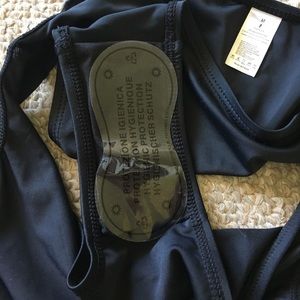 The famous red bathing suit in BLACK. Lining: 80% Nylon, 20% Polyester. Fabric: 82% Nylon, 18% Spandex. Super cute, limited coverage when on. It has an elastic shelf bra with lining. The hygienic protection sticker has not been removed. It has been tried on, but not worn (it was too small for me). It came without a tag but it is brand new. I included the size chart from the website I would say it runs small. ▪️MEASUREMENTS: 11" across bust, 17" from neckline straight down.