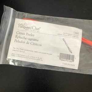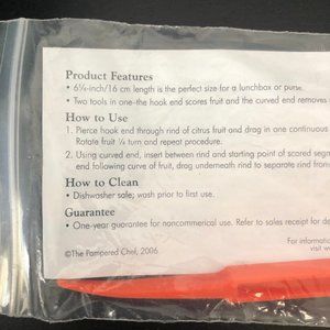 This is 2 tools in 1, the hook end scores fruit and the curved end removes peel