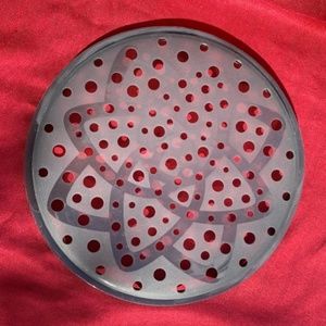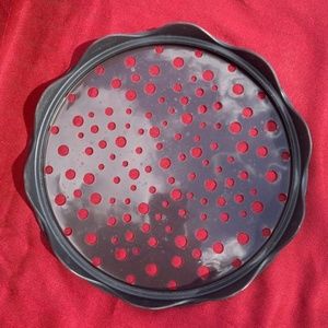 The Pampered Chef Microwave Chip Maker #1241 Set Of 2. Black silicone material. Good condition and only used one. 11 inch diameter. Does not come with original box or packing.