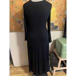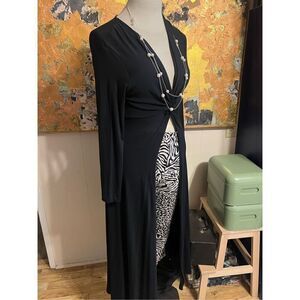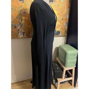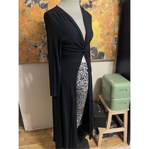 This is a versatile and sexy garment from the Paragon Catalog, which has been around forever! This is a glamorous black stretchy topper, wear it as an evening gown with a skirt and top under or as lingerie! This evokes old Hollywood to me, with the slit down the front and the knot at the waist. SO versatile! Wear over shorts, palazzo pants or a full skirt! or over not much! Great condition. Rayon and spandex to machine wash. Perfect condition, could be NWOT.