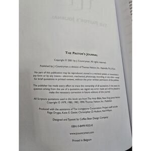 A pastor's week is filled with an endless assortment of demands and events - from weddings and funerals to sermon preparation and staffing issues. Until now, there was not a single resource that pastors could carry with them to manage these multiple demands. The Pastor's Journal, covered in rich Eurobond leather, includes the following features requested by pastors: