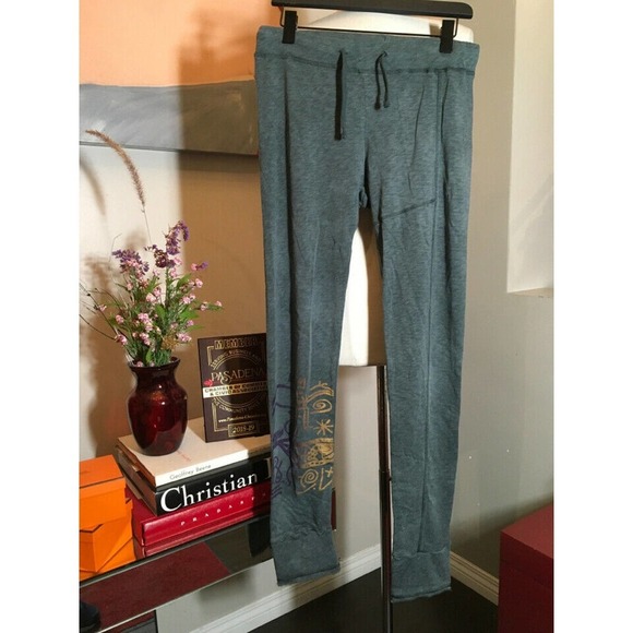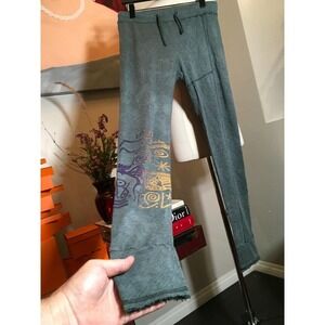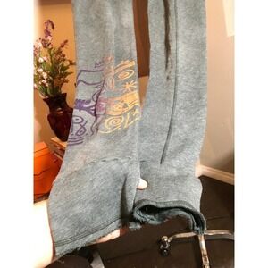 Lounge around in style with these sweatpants by The People of the Labyrinths. Unique hand painted design on one leg No pockets. A hint of piling at waist band.