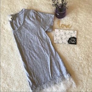 I love the casual comfort of this soft grey t-shirt, combined with the fun lace trim! So easily dressed up or down! By J. Crew Factory. EUC