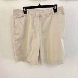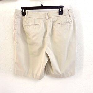 Features - Mid-Rise, Zipper & Hook and Bar Closure, Slash Front Pockets, Welt Back Pockets, Above Knee Length, Stretch