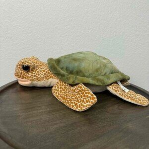 The Petting Zoo Sea Turtle Plush Toy Hand Puppet Realistic Tan Green Medium