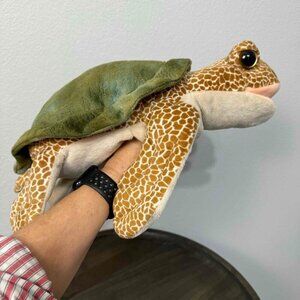 The Petting Zoo Sea Turtle Plush Toy Hand Puppet Storytelling Realistic Tan Green
