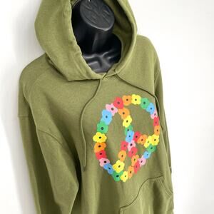 The Phluid Project NEW Floral Peace Sign Hoodie Unisex Sz M Green Pocket Soft