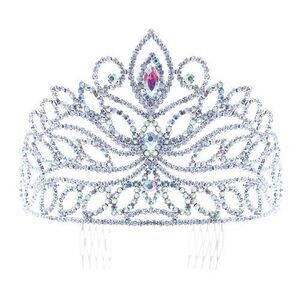 A must-have for your accessories collection! This beautiful silver-toned tiara is embraced with sparkling diamond crystals and iridescent stones featuring a simple, rising design with comb edges to sit perfectly in your hair.