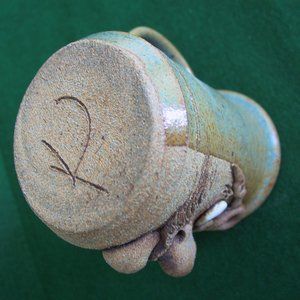 This piece of pottery is from the studio of Robert Karlinsey and is individually handcrafted, lead free and dishwasher safe. Heighth: 4 5/8 inches, Diameter: 3 3/8 inches.