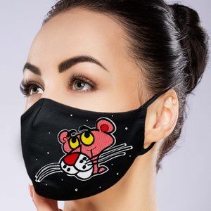 The Pink Panther Face Mask w/ filter pocket. Embroidery Rhinestones
