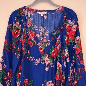 The Pioneer Woman Blue Red Floral Print 3/4 Sleeve Peasant Top Womens XXL