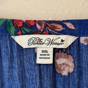 This is a The Pioneer Woman Blue Red Floral Print 3/4 Sleeve Peasant Top tunic style in Women’s size XXL in gently used condition