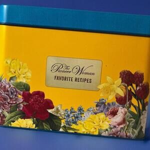 The tin comes from THE PIONEER WOMAN, a brand known for bringing both functionality and aesthetics to your kitchen. It's perfect for storing index cards, blank recipe pages, or even as a decorative piece for your countertops. With this recipe box, you'll have a place to treasure your culinary creations and memories.
