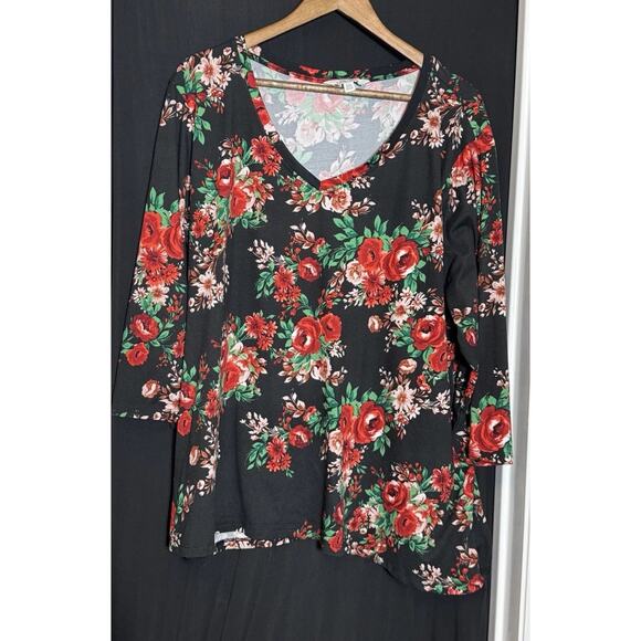 The Pioneer Woman Floral Blouse Women's 3X XXXL V Neck 3/4 Sleeve Lightweight