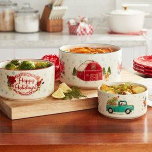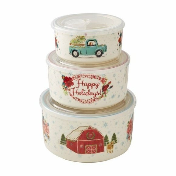 The Pioneer Woman Floral Holidays 6-Piece Round Nesting Stoneware Bakewa…
