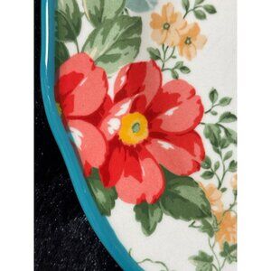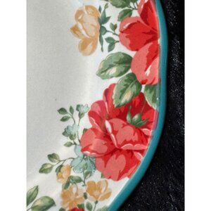 The Pioneer Woman Floral Stoneware Dinner Plate Crafted from durable stoneware, this plate combines functionality with an elegant floral design. Its microwave and dishwasher-safe features ensure convenience for daily use. • 11-inch diameter • Scalloped edge design • Vibrant floral pattern • Dishwasher & microwave safe • Sturdy stoneware material Very good Pre owned Condition NO CHIPS OR CRACKS. Comes from a smoke and pet free home. Please look at all the pictures for they are part of the description.