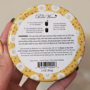 These smell SO yummy!!! This is a brand new tin of 10 French Toast Scented Figural Wax Melts from The Pioneer Woman. They come in an adorable yellow tin with orange polka dots and sweet little white daisies. The net weight is 3oz (85g).