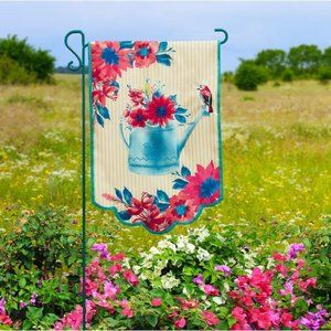 The Pioneer Woman Fresh Floral Watering Can Polyester Linen Garden Flag NWT