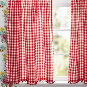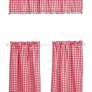 Add some country flair to your home with The Pioneer Woman Gingham 3-Piece Tier & Valance Set. This gorgeous set features a red and white gingham design in vibrant colors that will stand out. The set includes two curtain tiers and a valance with a red pompom trim on each tier. It's the perfect set for your kitchen, breakfast nook, living room, or anywhere you want to add country charm.